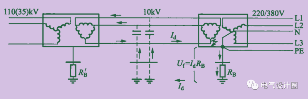 而低壓配電的系統接地與高壓配電裝置的保護接地往往是共用的接地極的,所以低壓側PE線對地電位也升高至40V,這個值小于人身電擊的預期故障接觸電壓限值50V,從而當高壓側發(fā)生接地故障時引起低壓側電擊事故的幾率會很小。